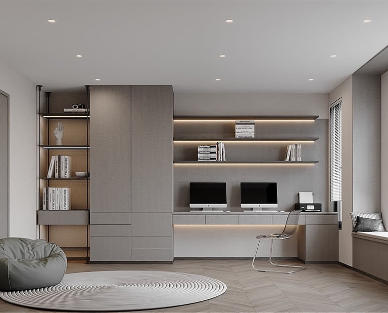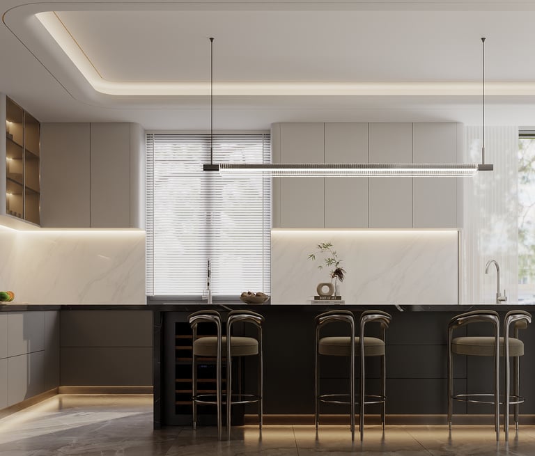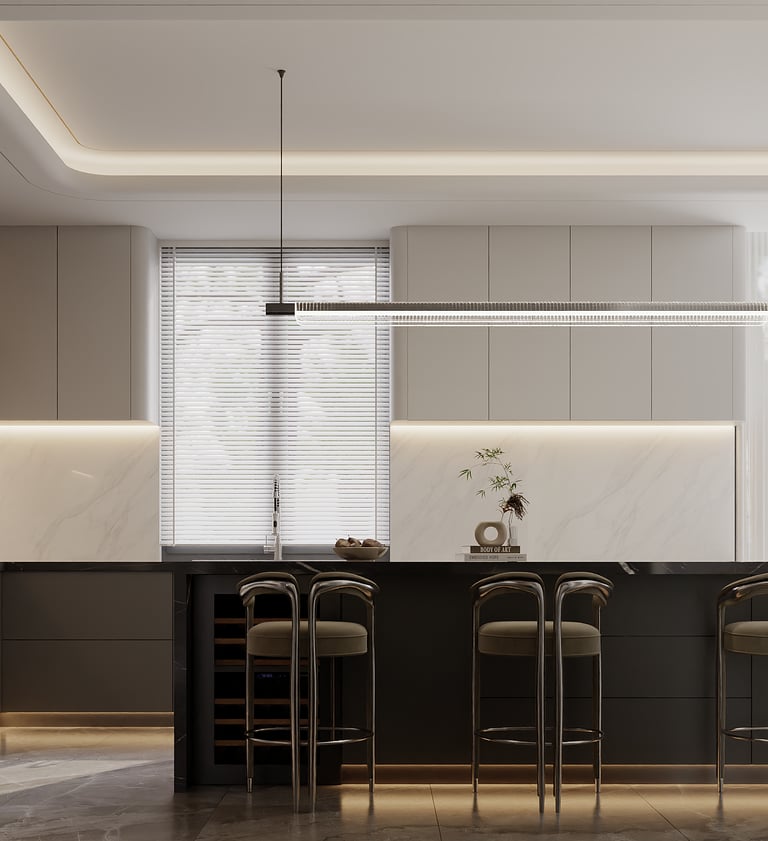 We develop residential environments as integrated spatial systems — where millwork, architectural surfaces, and proportion align within a coherent structure.
