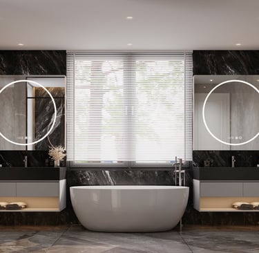 Stone, wood, and surface finishes are aligned across spaces to maintain continuity.